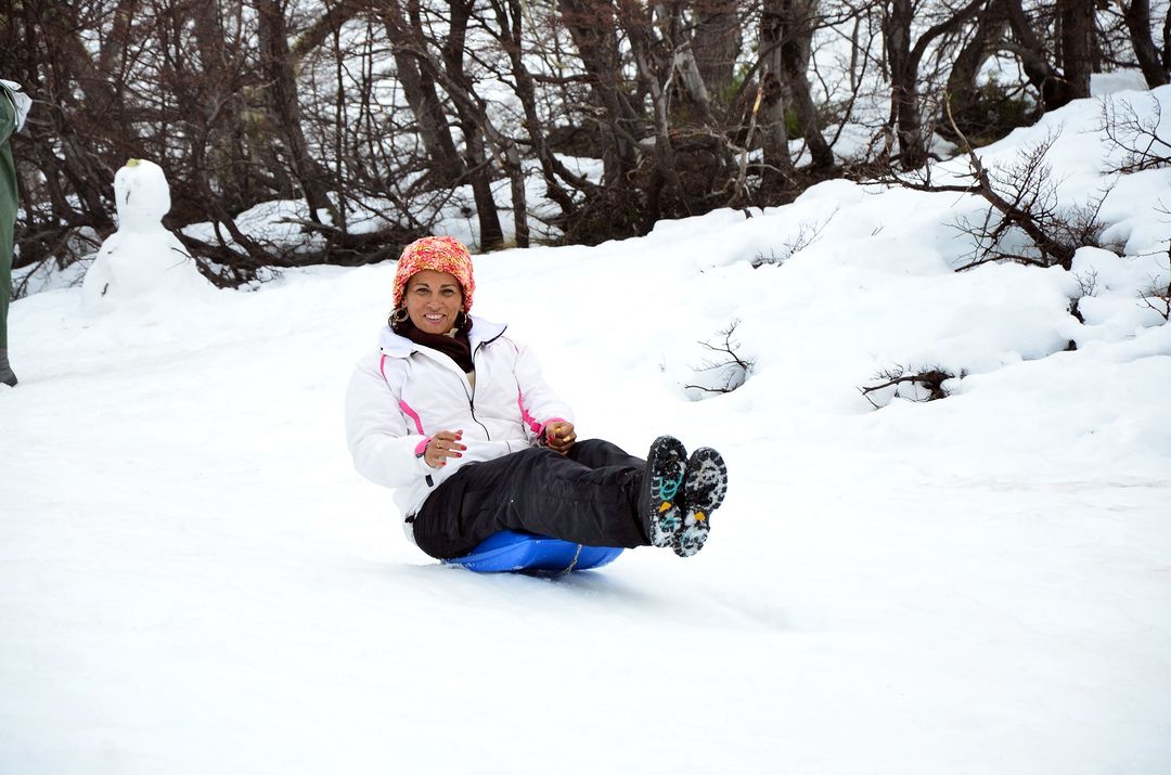 Al llegar al refugio recibiremos la bienvenida y el guía nos contará cómo se desarrolla la salida. Luego, iniciaremos la caminata hacia la Laguna Congelada. En el camino, iremos descubriendo los diversos habitantes del bosque. Haremos algunas paradas para tomar divertidas fotografías y jugar en la nieve. El recorrido lleva poco más de una hora hasta llegar a la laguna, donde pasaremos un tiempo disfrutando de la paz del lugar y renovando energías con un alfajor artesanal y té saborizados. De regreso al refugio nos esperará el almuerzo con entrada, plato principal y postre. Después de almorzar, disfrutaremos de las pistas especialmente preparadas para hacer descensos en deslizadores plásticos, más conocidos como culipatines.