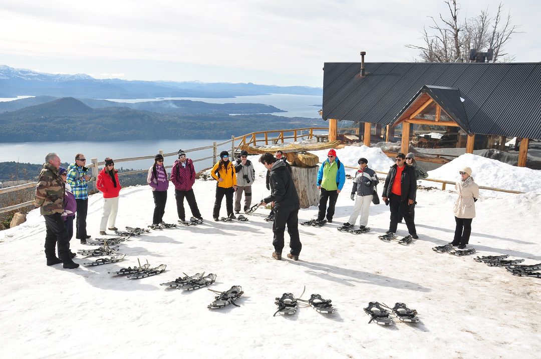 Una vez en el área de actividad, luego de una charla informativa y de seguridad, el guía nos colocará las raquetas y comenzaremos una travesía de 20 minutos, por un bosque nevado de lengas. El guía, nos irá comentando sobre la historia del lugar y las diferentes especies de flora y fauna. Arribaremos a un mirador. Luego de disfrutar esta singular parada, jugaremos con la nieve, en nuestra pista de trineos, justo detrás del refugio.