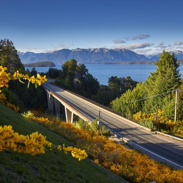 La famosa excursión por Los Siete lagos se inicia por la emblemática Ruta Nacional 40, el camino es sinuoso y rodeado por un paisaje increíble de bosques andino patagónicos, lagos y montañas. Se pasa por Villa la Angostura y a lo largo del camino se observan los lagos Correntoso, Espejo, Escondido, Villarino, Falkner, Hermoso y Machonico. Finalmente se arriba a la ciudad de San Martín de los Andes a orillas del Lago Lacar, uno de los poblados más bellos por su arquitectura y diseño, rodeada además de hermosos paisajes cordilleranos.