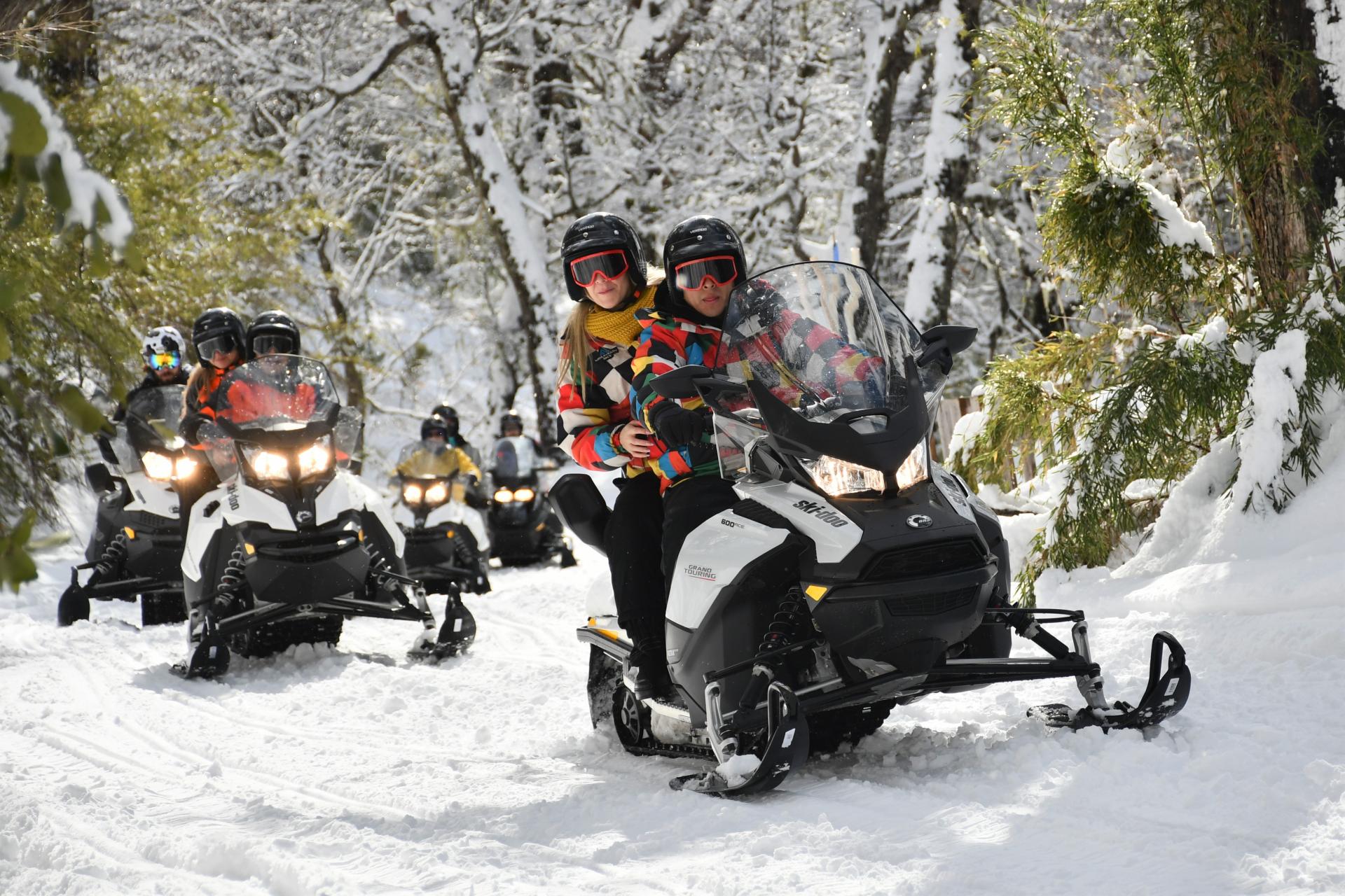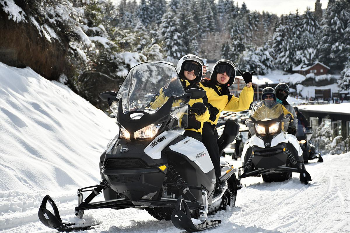 Se recorren 6 km. en moto de nieve. Van 2 personas por moto, la tarifa es por vehículo. Puede realizarse con menores desde los 6 años (consultar para asistir con menores de dicha edad). Solo conducen mayores de 18 años o menores de 17 con registro. Embarazadas solo podrán hacerlo en UTV conducido por guía.