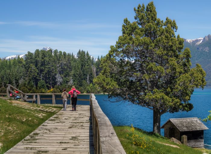 Tras una hora de navegación, partiendo desde Puerto Pañuelo en la Península de Llao Llao, se arriba a la península de Quetrihue, ubicada en el noreste del Lago Nahuel Huapi, donde conoceremos el Bosque de Arrayanes. El Arrayan (Quetrihue en lengua mapuche) es un arbusto de color azafrán y flores blancas. En éste lugar, único en el mundo, toma la envergadura de “árbol” para formar un mágico Bosque. Permanecemos en el bosque unos 45 minutos para recorrer las pasarelas y conocer la famosa casita de bosque.